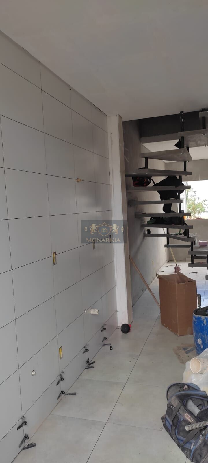 Escada flutuante deixando o ambiente com mais espaço.